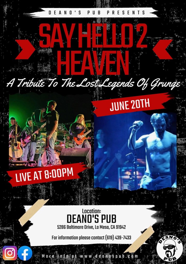 Friday June 20, 2025 – Deano’s Pub in La Mesa